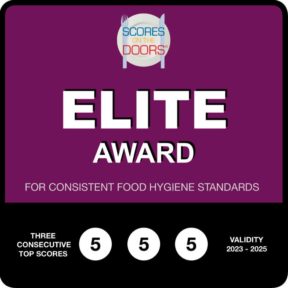 We have a 5 star food hygiene rating and have recently been awarded an “Elite Award” for having three or more consecutive 5 star ratings!